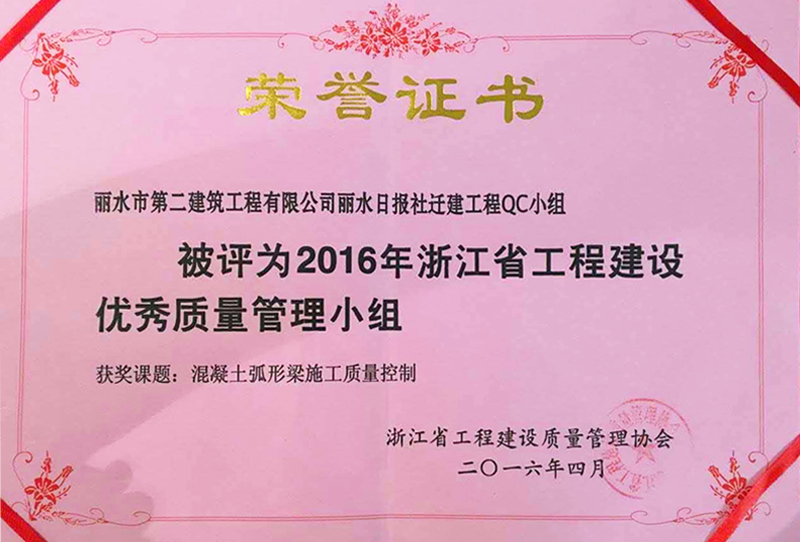 浙江省工程建設(shè)優(yōu)秀質(zhì)量管理小組 2016-04-23 16:19:46 6 上一篇 : 浙江省QC成果二等獎(jiǎng) 下一篇 : 先進(jìn)建筑業(yè)企業(yè)